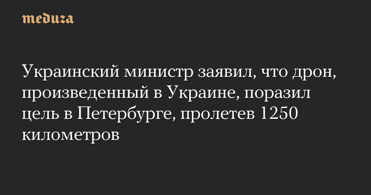 Украинский министр заявил, что дрон, произведенный в Украине, поразил цель в Петербурге, пролетев 1250 километров