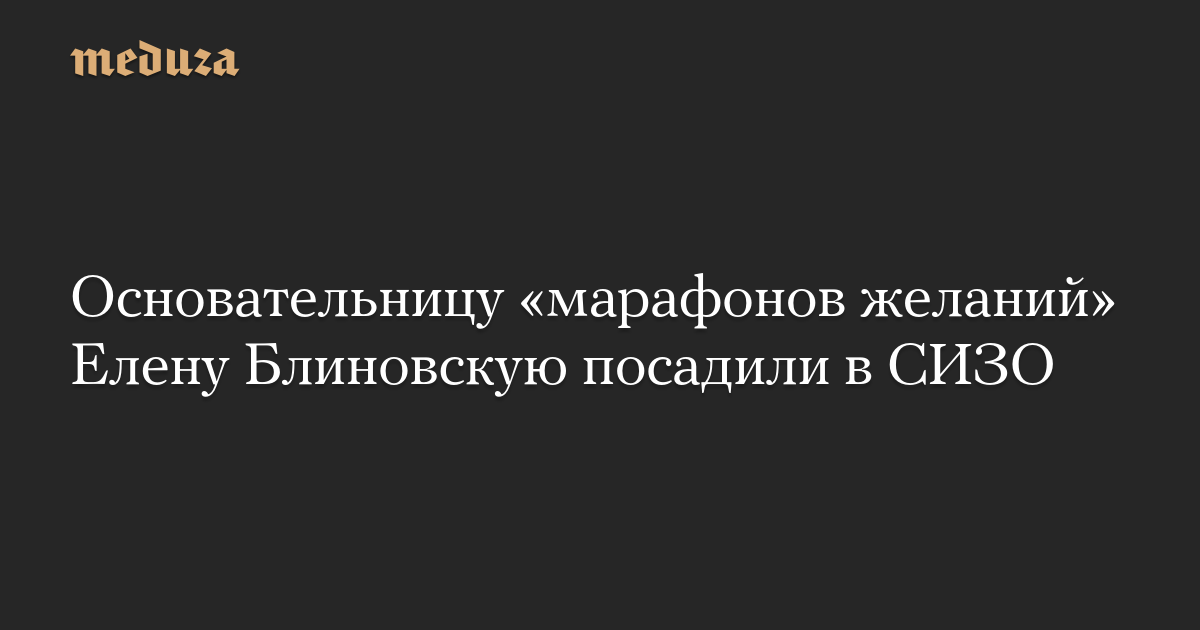 Основательницу «марафонов желаний» Елену Блиновскую посадили в СИЗО
