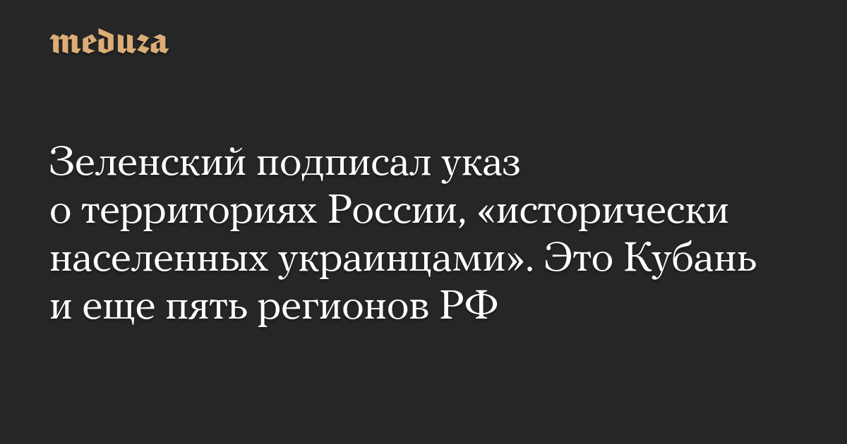 Зеленский подписал указ о территориях России, «исторически населенных украинцами». Это Кубань и еще пять регионов РФ