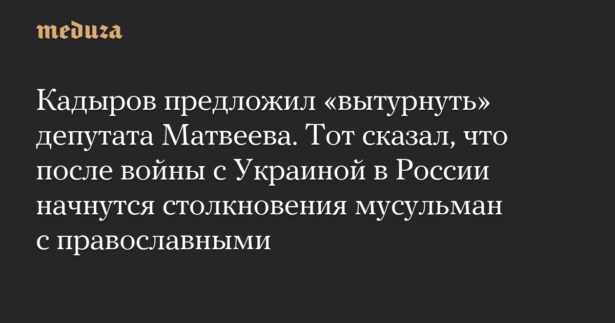 Кадыров предложил «вытурнуть» депутата Матвеева. Тот сказал, что после войны с Украиной в России начнутся столкновения мусульман с православными