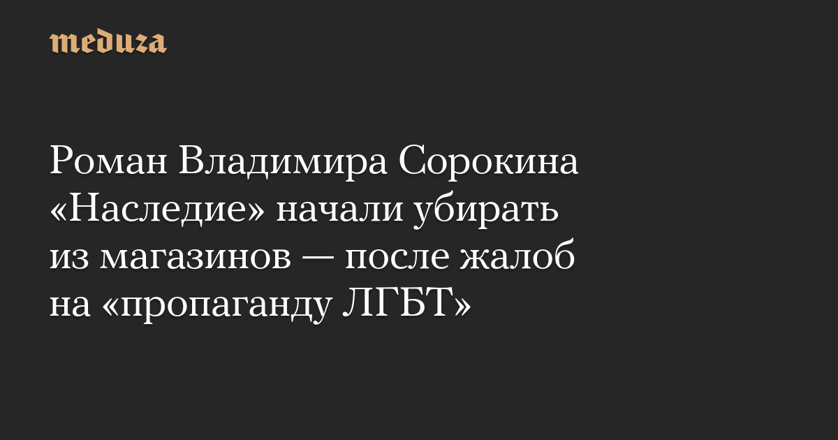 Роман Владимира Сорокина «Наследие» начали убирать из магазинов — после жалоб на «пропаганду ЛГБТ»