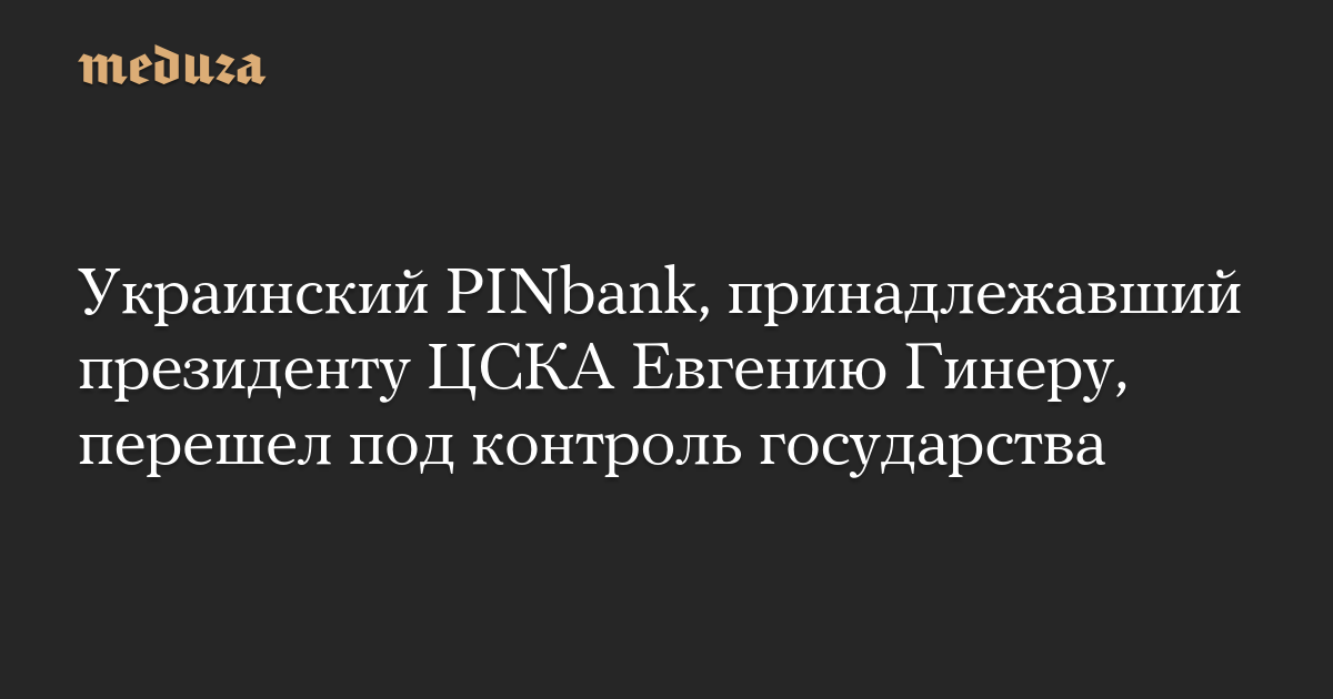 Украинский PINbank, принадлежавший президенту ЦСКА Евгению Гинеру, перешел под контроль государства