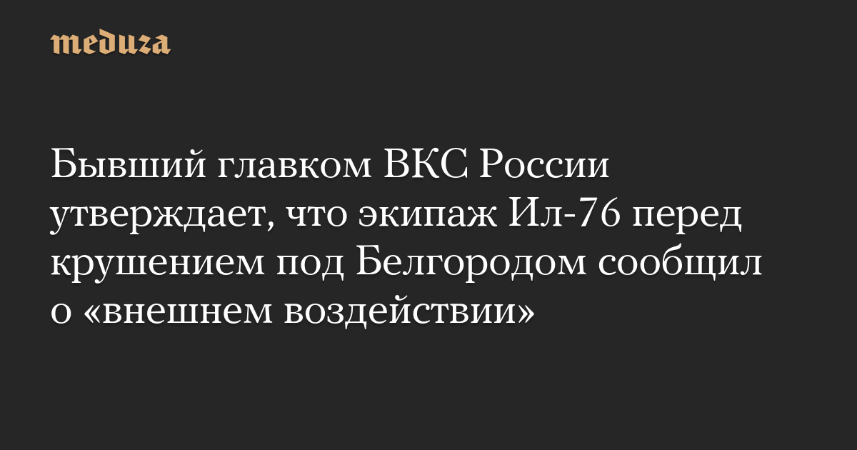 Бывший главком ВКС России утверждает, что экипаж Ил-76 перед крушением под Белгородом сообщил о «внешнем воздействии»