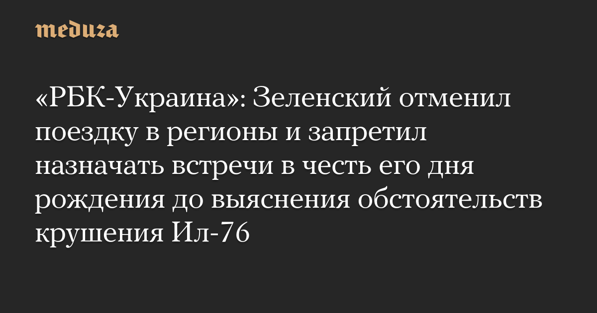 «РБК-Украина»: Зеленский отменил поездку в регионы и запретил назначать встречи в честь его дня рождения до выяснения обстоятельств крушения Ил-76