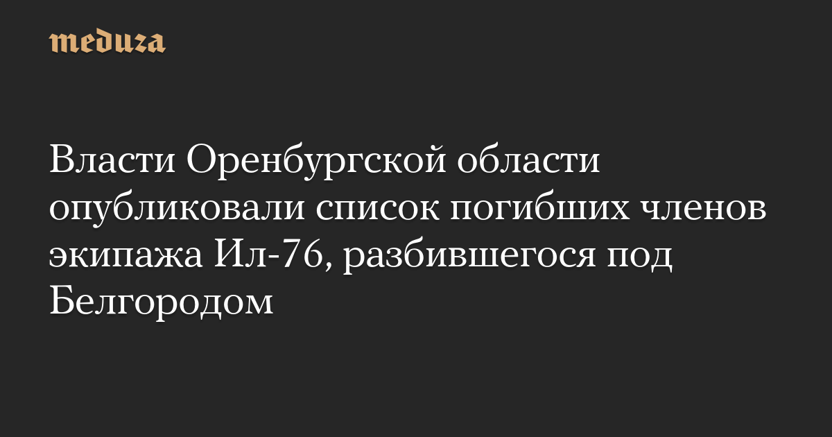 Аппарат губернатора и правительства Оренбургской области опубликовал в своем телеграм-канале фамилии членов экипажа Ил-76, разбившегося под Белгородом 24 января.