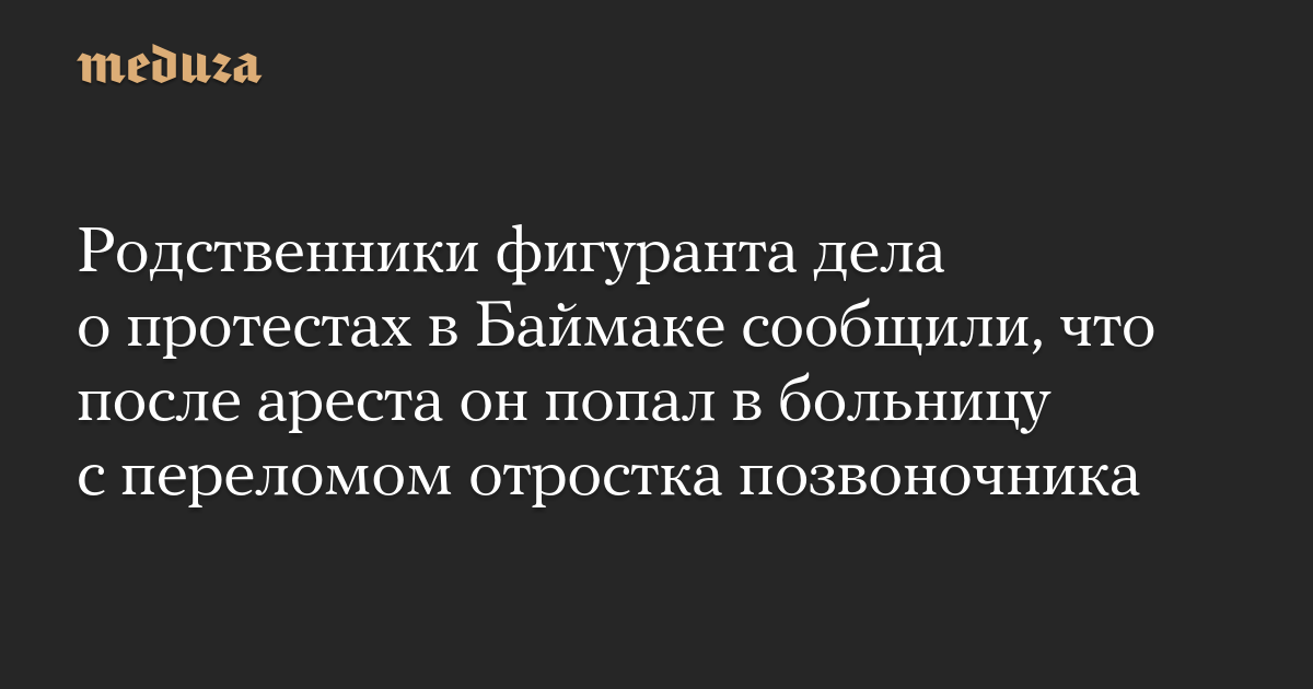 Родственники фигуранта дела о протестах в Баймаке сообщили, что после ареста он попал в больницу с переломом отростка позвоночника