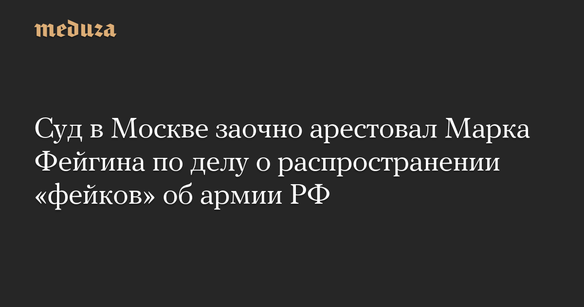 Басманный районный суд Москвы заочно арестовал юриста и блогера Марка Фейгина по делу о распространении «фейков» о российской армии, сообщает пресс-служба судов города.