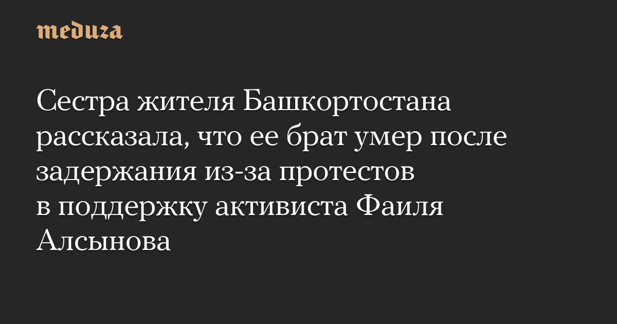 Сестра жителя Башкортостана рассказала, что ее брат умер после задержания из-за протестов в поддержку активиста Фаиля Алсынова
