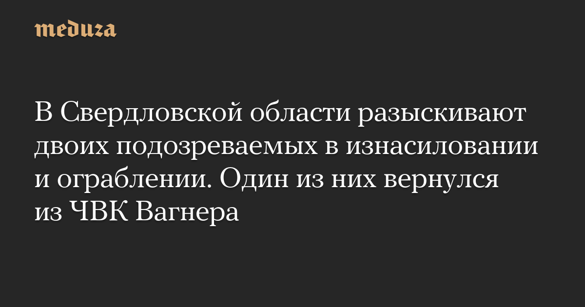 В Свердловской области разыскивают двоих подозреваемых в изнасиловании и ограблении. Один из них вернулся из ЧВК Вагнера