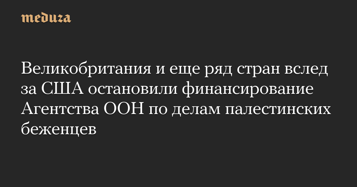 Великобритания и еще ряд стран вслед за США остановили финансирование Агентства ООН по делам палестинских беженцев
