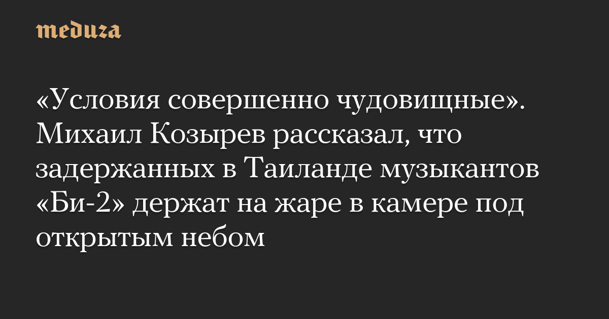 «Условия совершенно чудовищные». Михаил Козырев рассказал, что задержанных в Таиланде музыкантов «Би-2» держат на жаре в камере под открытым небом