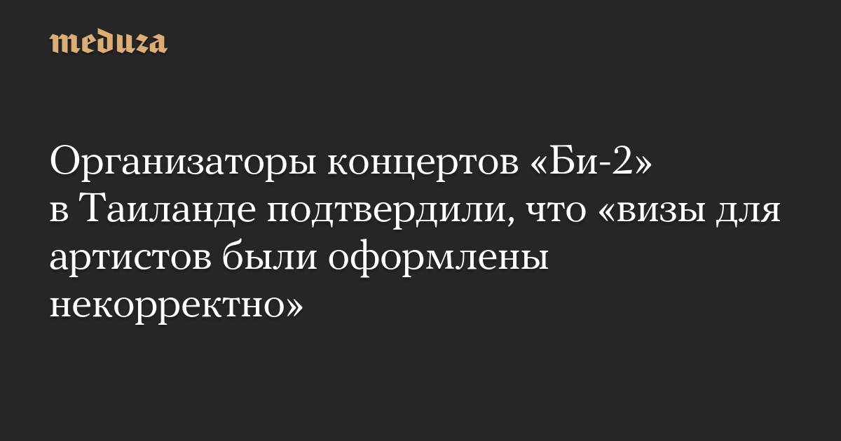 Организаторы концертов «Би-2» в Таиланде подтвердили, что музыкантов задержали из-за «некорректно» оформленных документов — участники группы находились в стране по туристическим визам, говорится в телеграм-канале компании VPI Event.