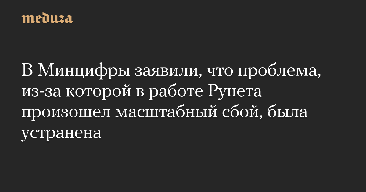 В Минцифры заявили, что проблема, из-за которой в работе Рунета произошел масштабный сбой, была устранена