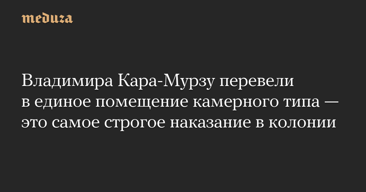 Владимира Кара-Мурзу перевели в единое помещение камерного типа — это самое строгое наказание в колонии