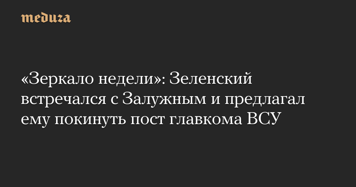 Украинское издание «Зеркало недели» утверждает, что встреча президента Владимира Зеленского и главкома ВСУ Валерия Залужного, на которой обсуждалась отставка последнего, все же состоялась.