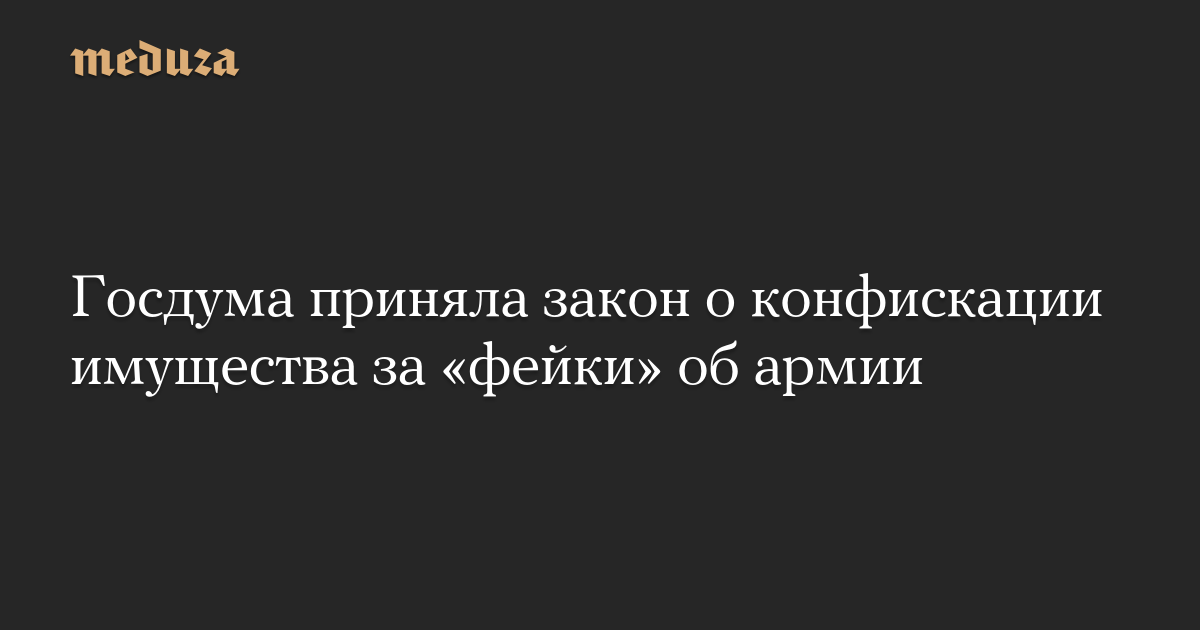 Госдума во втором и третьем чтении приняла закон о конфискации имущества за «фейки» об армии (207.3 УК РФ), сообщает «Интерфакс».