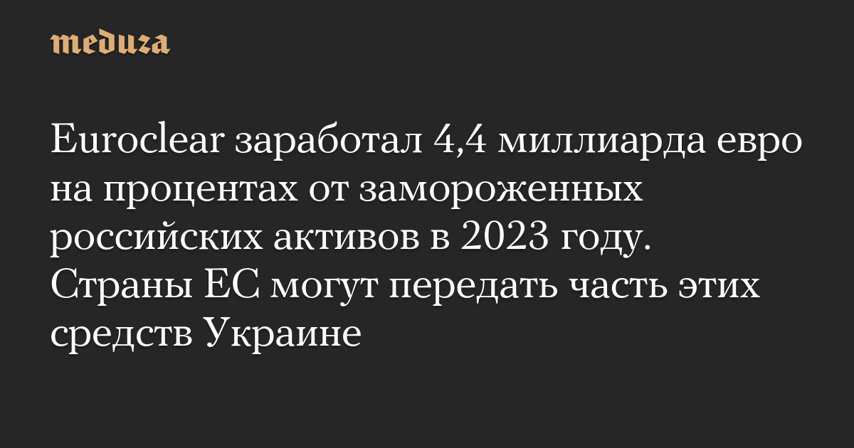 Euroclear заработал 4,4 миллиарда евро на процентах от замороженных российских активов в 2023 году. Страны ЕС могут передать часть этих средств Украине