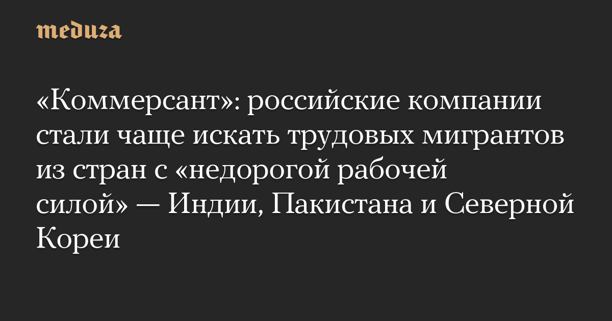 «Коммерсант»: российские компании стали чаще искать трудовых мигрантов из стран с «недорогой рабочей силой» — Индии, Пакистана и Северной Кореи