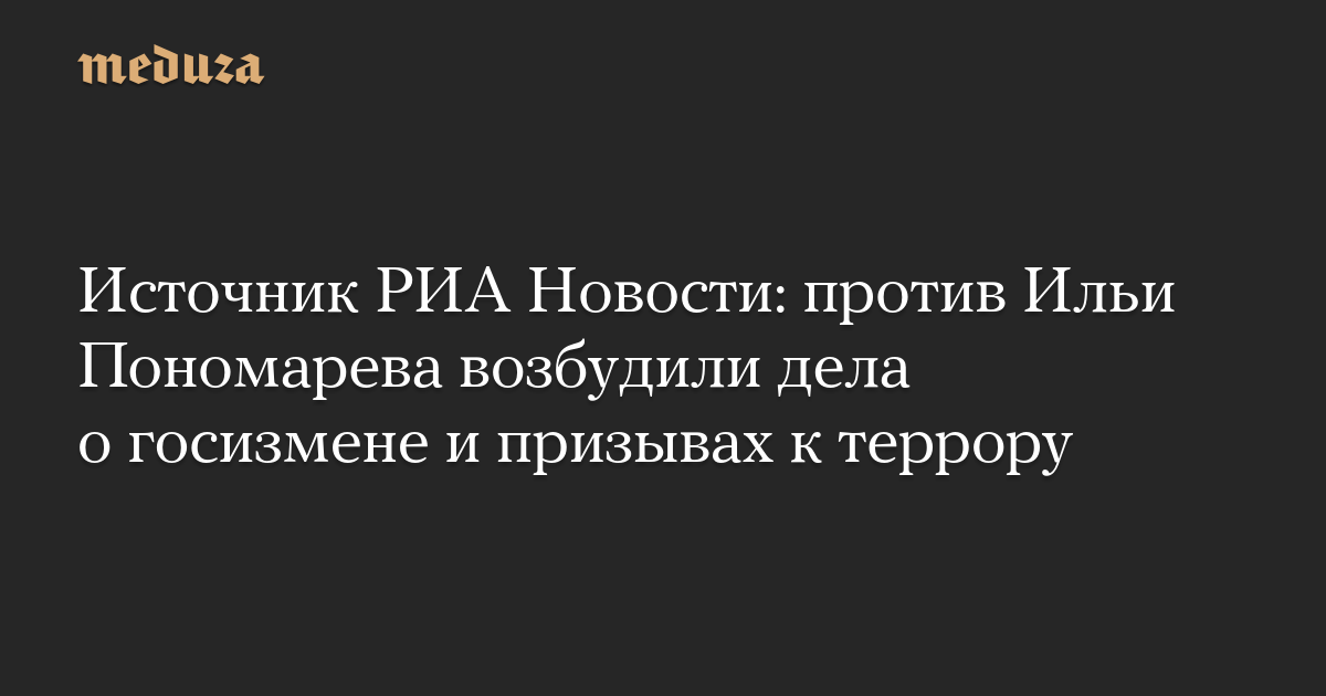 Источник РИА Новости: против Ильи Пономарева возбудили дела о госизмене и призывах к террору