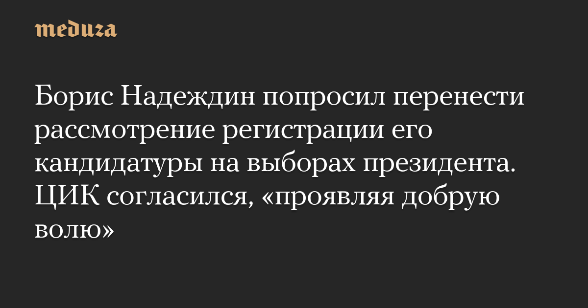 Борис Надеждин попросил перенести рассмотрение регистрации его кандидатуры на выборах президента. ЦИК согласился, «проявляя добрую волю»
