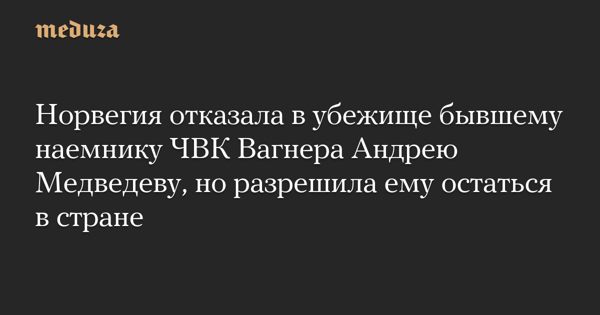 Норвегия отказала в убежище бывшему наемнику ЧВК Вагнера Андрею Медведеву, но разрешила ему остаться в стране