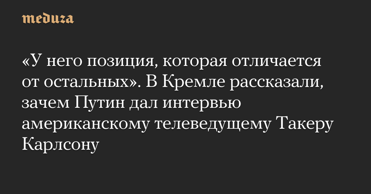 По просьбе журналистов представитель Кремля объяснил, почему Путин решил дать интервью именно Карлсону. «У него позиция, которая отличается от остальных [западных СМИ]. Она никоим образом не пророссийская, не проукраинская, она, скорее, проамериканская, но, по крайней мере, она контрастно отличается от позиции традиционных англосаксонских СМИ», — сказал Песков (цитата по «Интерфаксу»).