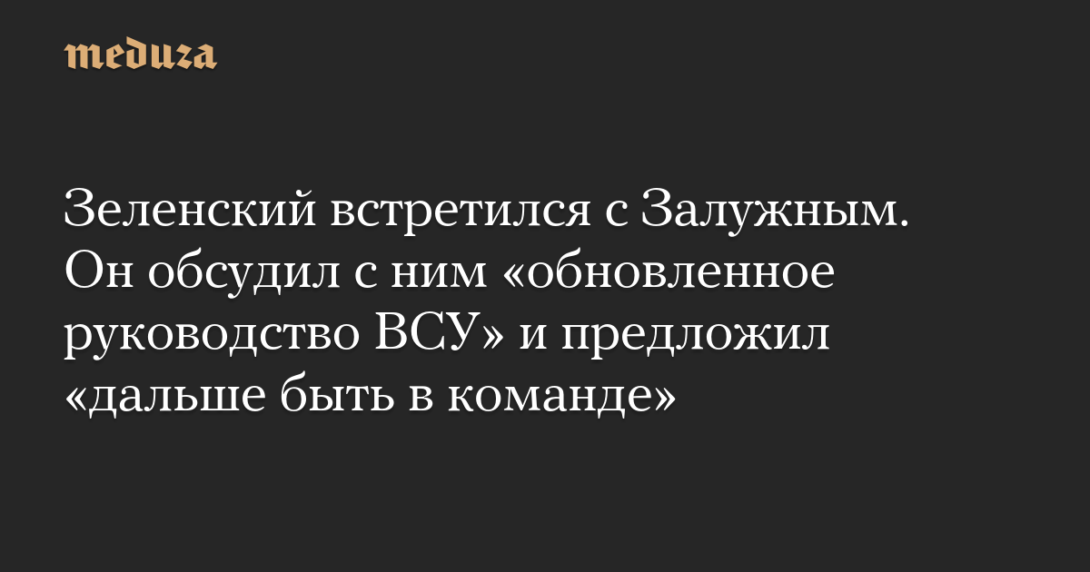 Зеленский встретился с Залужным. Он обсудил с ним «обновленное руководство ВСУ» и предложил «дальше быть в команде»