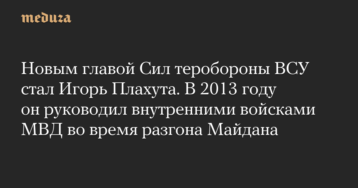 Новым главой Сил теробороны ВСУ стал Игорь Плахута. В 2013 году он руководил внутренними войсками МВД во время разгона Майдана
