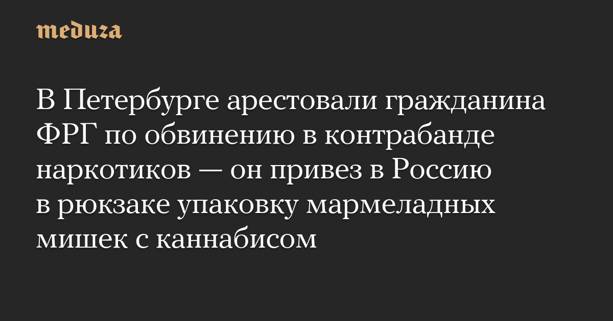 В Петербурге арестовали гражданина ФРГ по обвинению в контрабанде наркотиков — он привез в Россию в рюкзаке упаковку мармеладных мишек с каннабисом