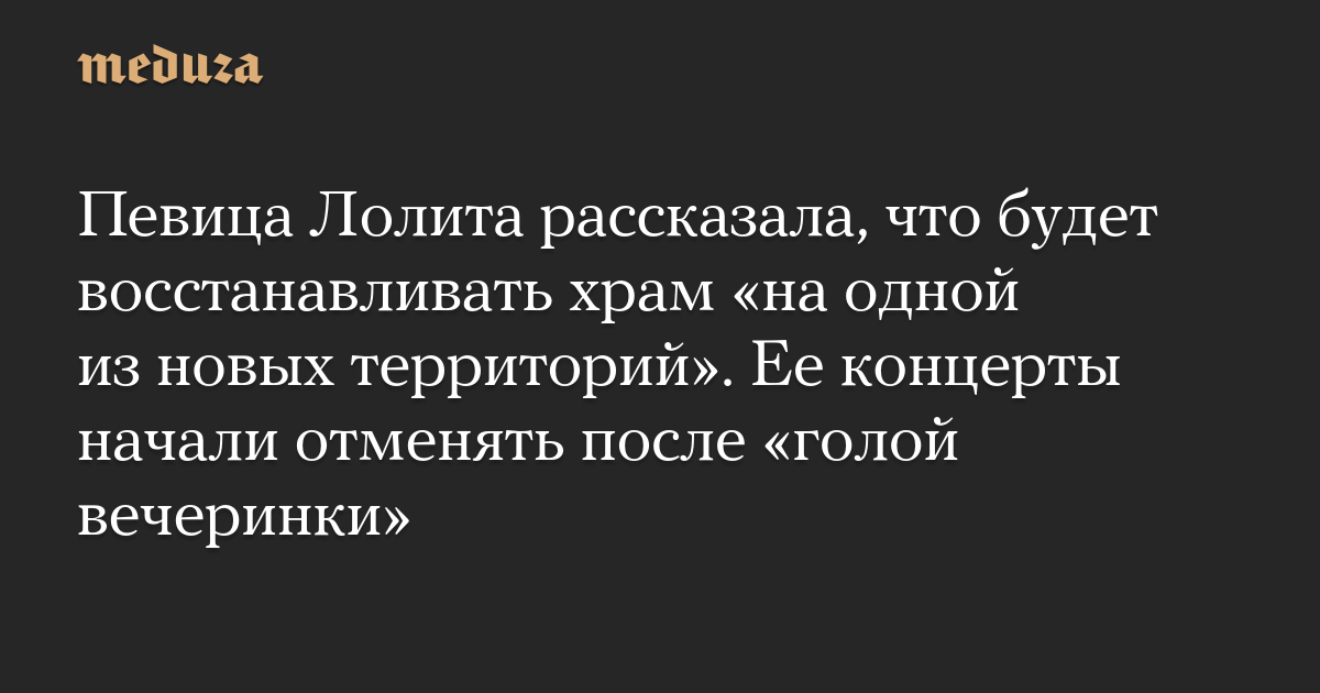 Певица Лолита рассказала, что будет восстанавливать храм «на одной из новых территорий». Ее концерты начали отменять после «голой вечеринки»