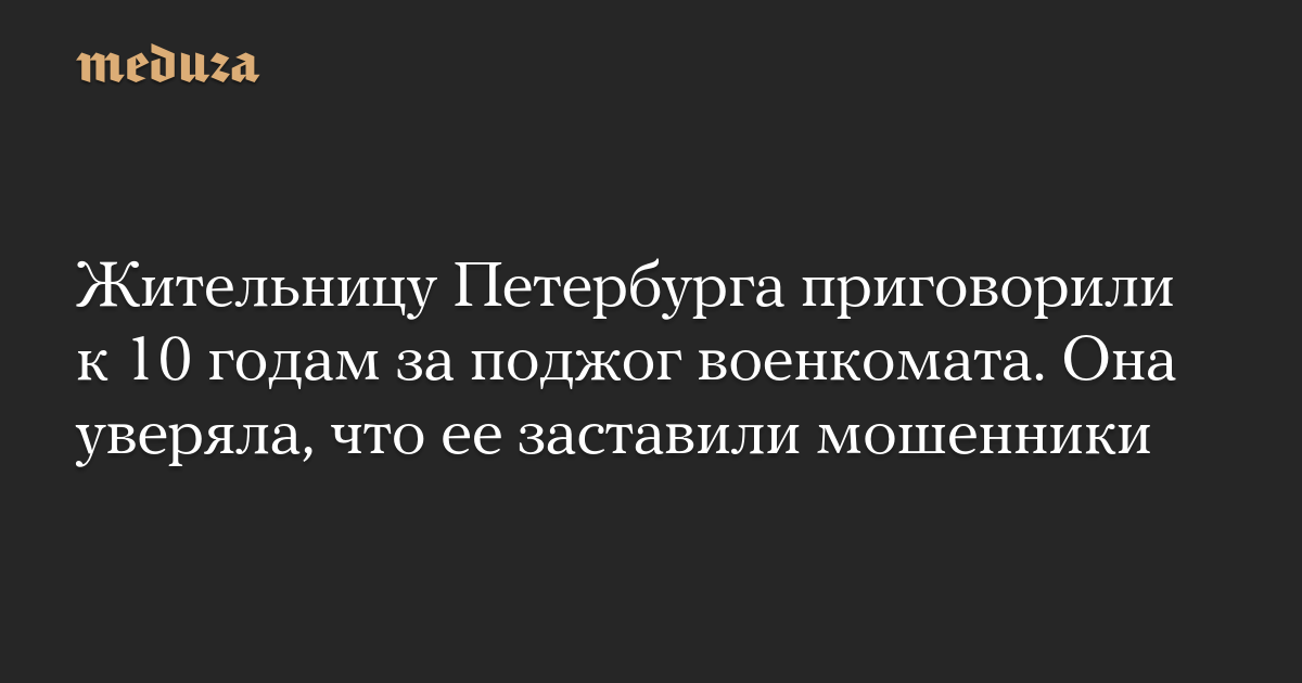 Жительницу Петербурга приговорили к 10 годам за поджог военкомата. Она уверяла, что ее заставили мошенники