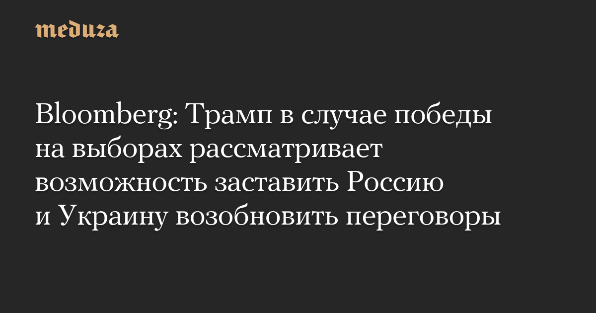 Bloomberg: Трамп в случае победы на выборах рассматривает возможность заставить Россию и Украину возобновить переговоры