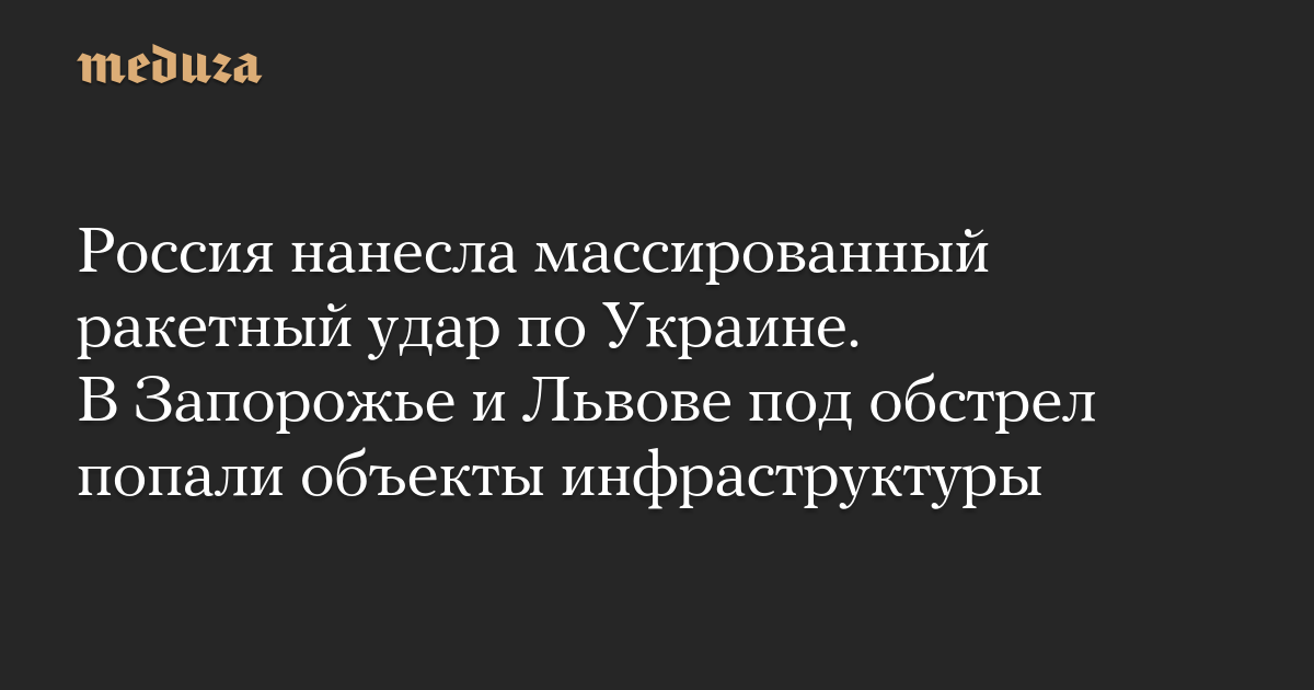 Россия нанесла массированный ракетный удар по Украине. В Запорожье и Львове под обстрел попали объекты инфраструктуры
