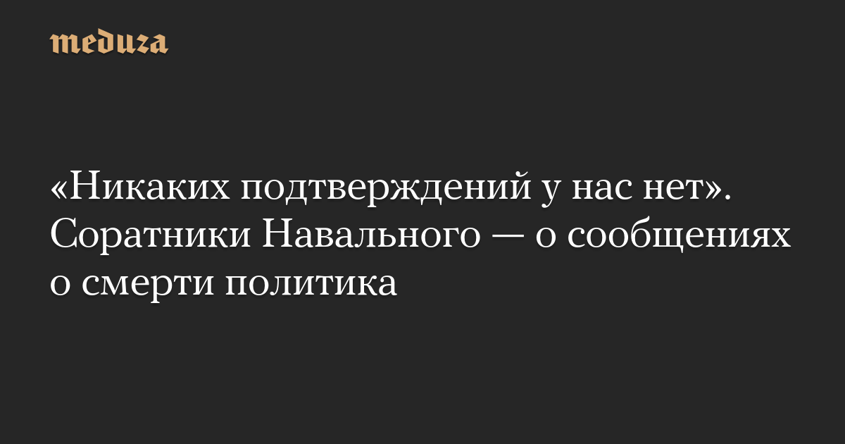 ФСИН по Ямало-Ненецкому округу распространяет новость о смерти Алексея Навального в ИК-3. Никаких подтверждений этого у нас пока нет. Адвокат Алексея сейчас вылетает в Харп. Как только у нас будет какая-то информация, мы ее сообщим.