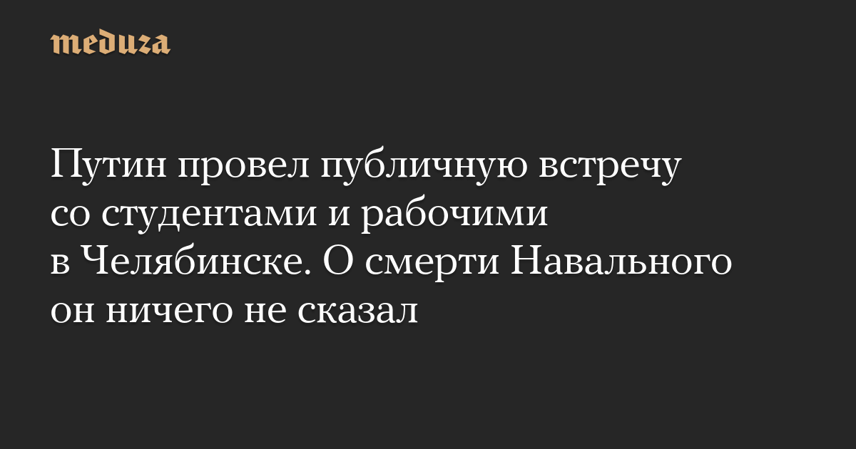 Путин провел публичную встречу со студентами и рабочими в Челябинске. О смерти Навального он ничего не сказал