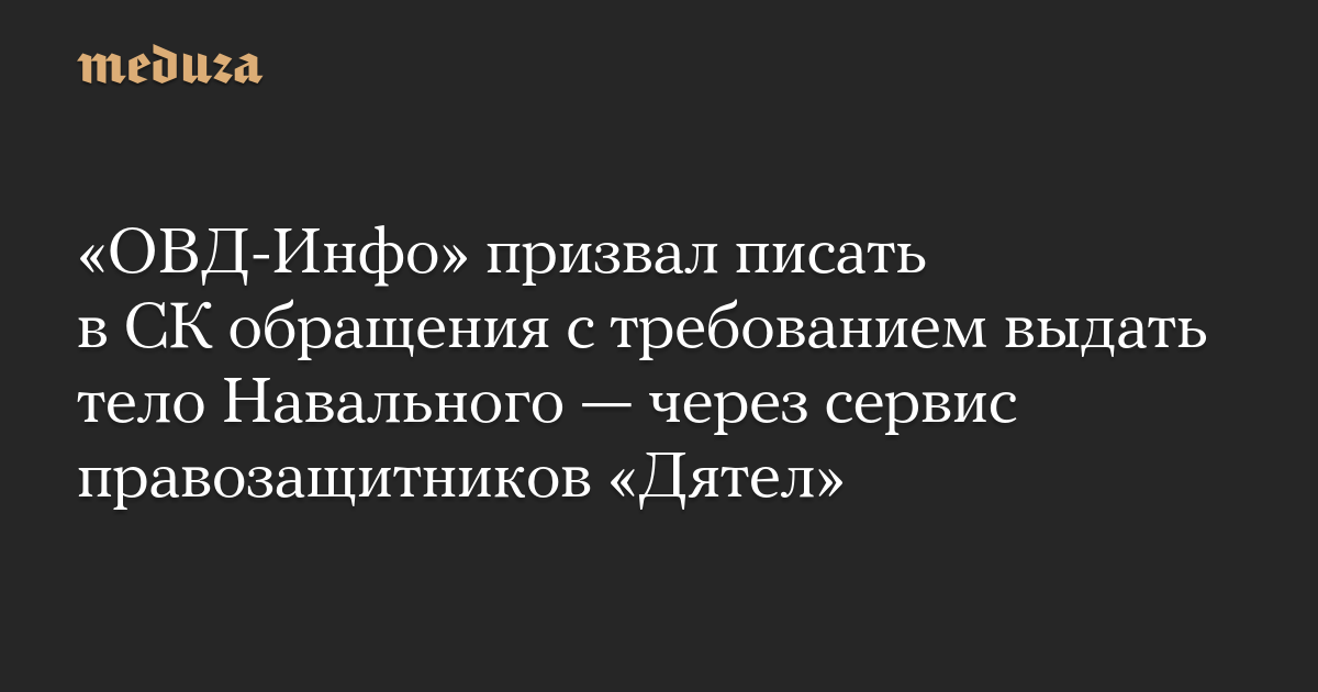 «ОВД-Инфо» призвал писать в СК обращения с требованием выдать тело Навального — через сервис правозащитников «Дятел»