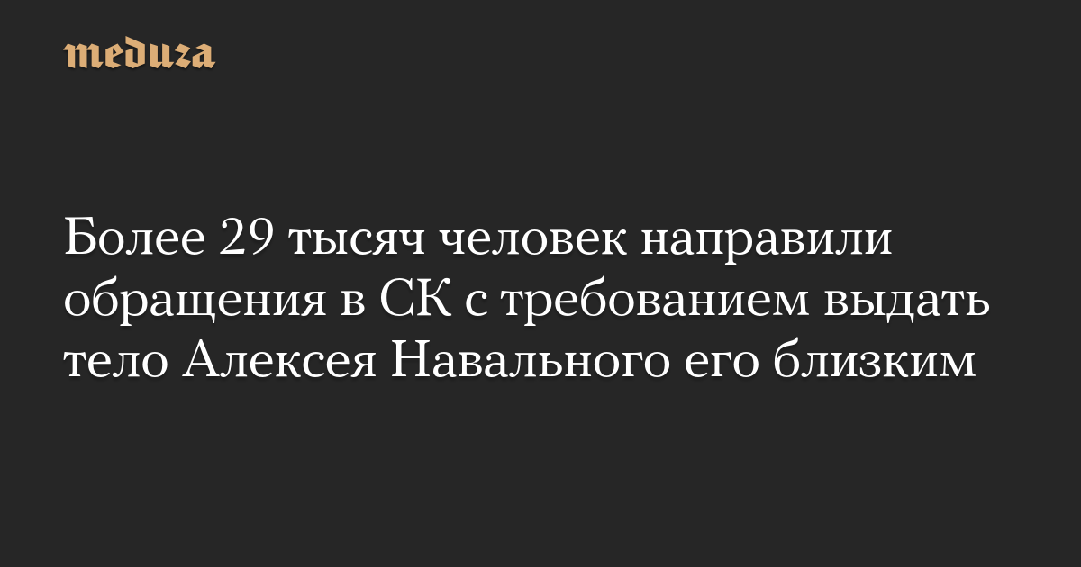 Обновление. По состоянию на вечер 18 февраля, более 29 тысяч человек направили обращения в СК с требованием выдать тело Алексея Навального его близким, сообщает «ОВД-Инфо».