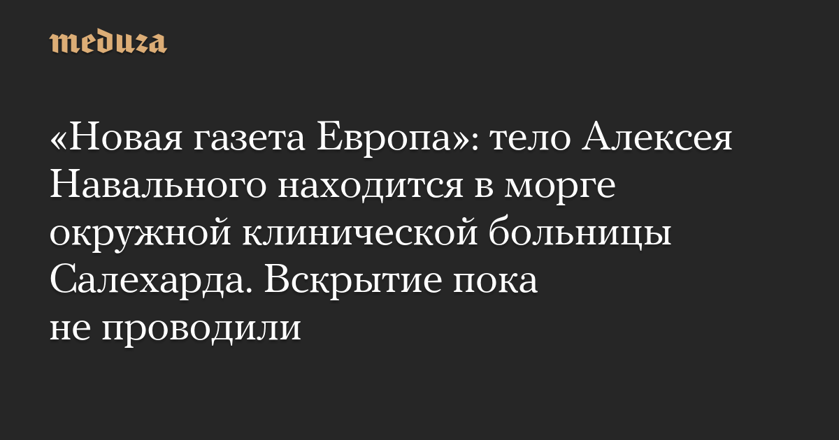 «Новая газета Европа»: тело Алексея Навального находится в морге окружной клинической больницы Салехарда. Вскрытие пока не проводили