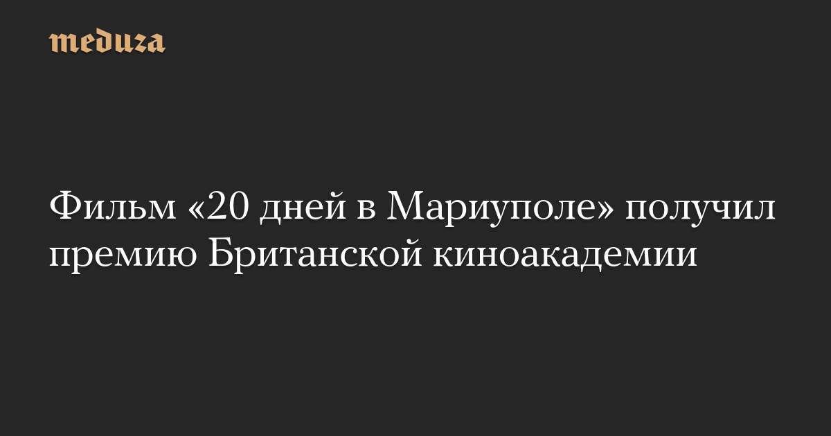 Фильм Мстислава Чернова «20 дней в Мариуполе» получил награду Британской академии кино и телевизионных искусств (BAFTA) в номинации «Лучший документальный фильм».
