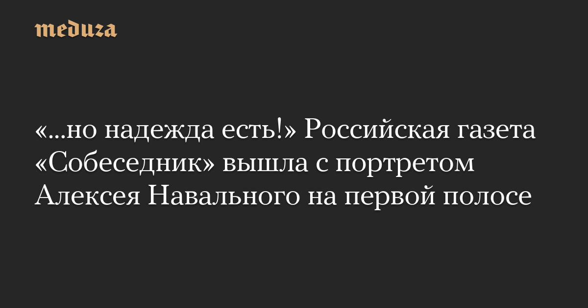 «…но надежда есть!» Российская газета «Собеседник» вышла с портретом Алексея Навального на первой полосе