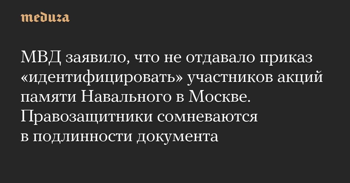 МВД заявило, что не отдавало приказ «идентифицировать» участников акций памяти Навального в Москве. Правозащитники сомневаются в подлинности документа