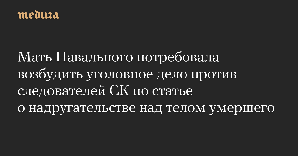 Мать Навального потребовала возбудить уголовное дело против следователей СК по статье о надругательстве над телом умершего