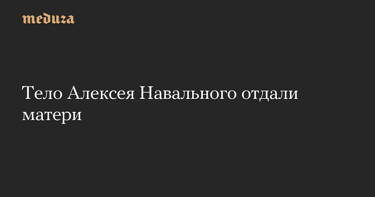 Тело Алексея Навального отдали матери, Людмиле Навальной, сообщила пресс-секретарь политика Кира Ярмыш.