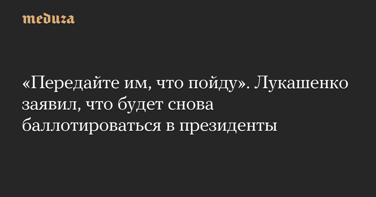 «Передайте им, что пойду». Лукашенко заявил, что будет снова баллотироваться в президенты