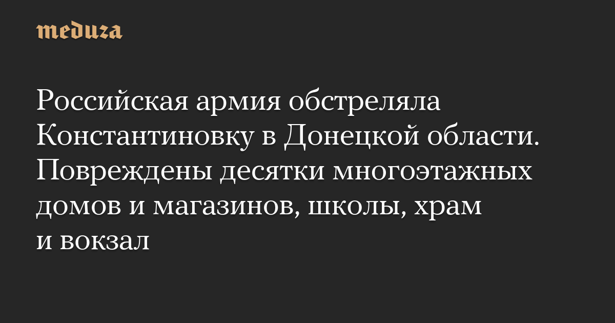 Российская армия обстреляла Константиновку в Донецкой области. Повреждены десятки многоэтажных домов и магазинов, школы, храм и вокзал
