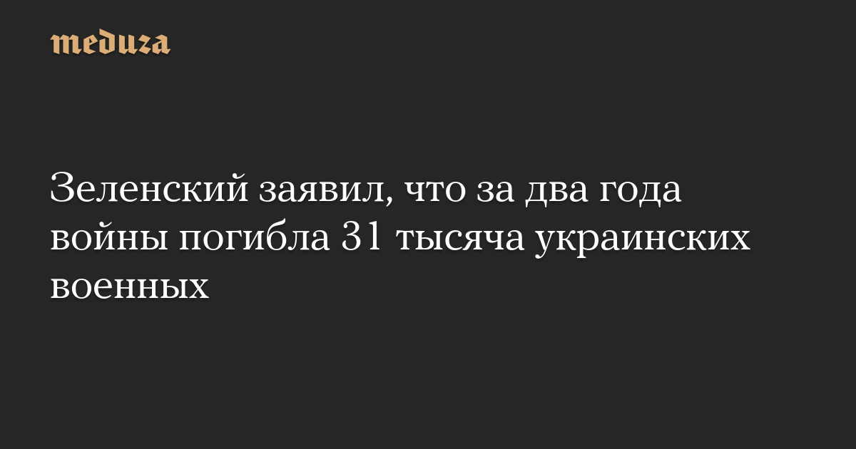 Зеленский заявил, что за два года войны погибла 31 тысяча украинских военных