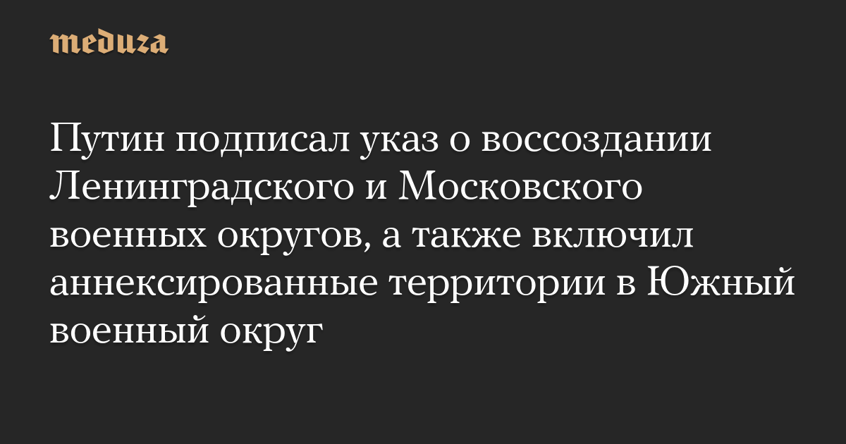 Путин подписал указ о воссоздании Ленинградского и Московского военных округов, а также включил аннексированные территории в Южный военный округ