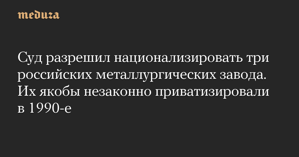 Суд разрешил национализировать три российских металлургических завода. Их якобы незаконно приватизировали в 1990-е
