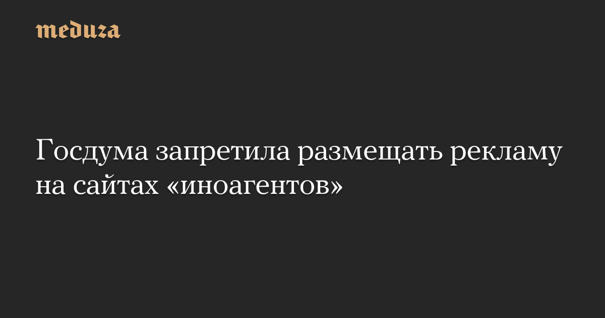 Госдума приняла в третьем чтении закон, запрещающий российским гражданам и компаниям размещать рекламу на ресурсах «иностранных агентов» — на их сайтах, в их соцсетях, блогах и других площадках.