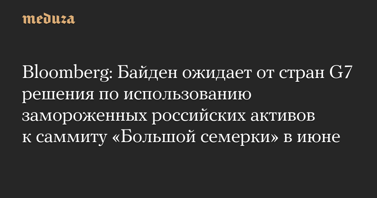 Bloomberg: Байден ожидает от стран G7 решения по использованию замороженных российских активов к саммиту «Большой семерки» в июне
